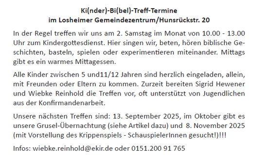 Ki(nder)Bi(bel)-Treff im Losheimer Gemeindezentrum/Hunsrückstr. 20
